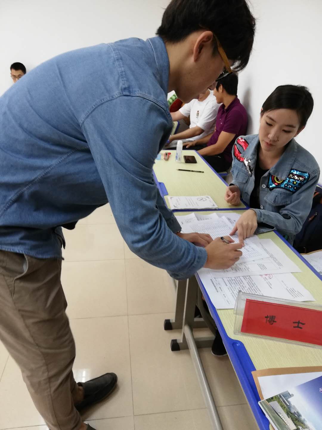 2018年8月25日上午8:00,半岛在线注册2018级硕士、博士研究生在东荣大厦1108室进行入学报到。 24日下午,王林强老师便组织志愿者们将报到所需材料准备完成,同时报到现场也按专业摆放了桌签,我们的志愿者同学还细心的在走廊里贴上路标,以方便同学们找到家。