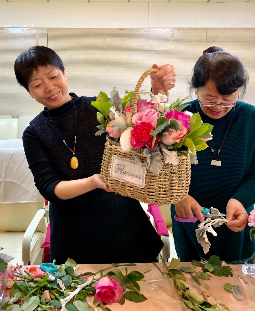 插花讲师耐心讲授花语、插花方法,并对每一位老师进行一对一精心指导。两个小时过后,老师们从兴趣盎然到享乐其中,展现了高超的审美和天赋。