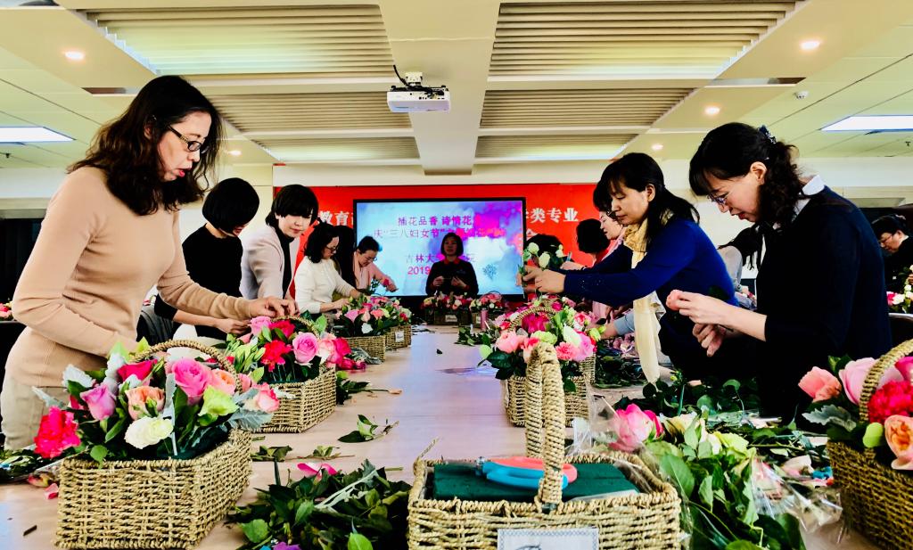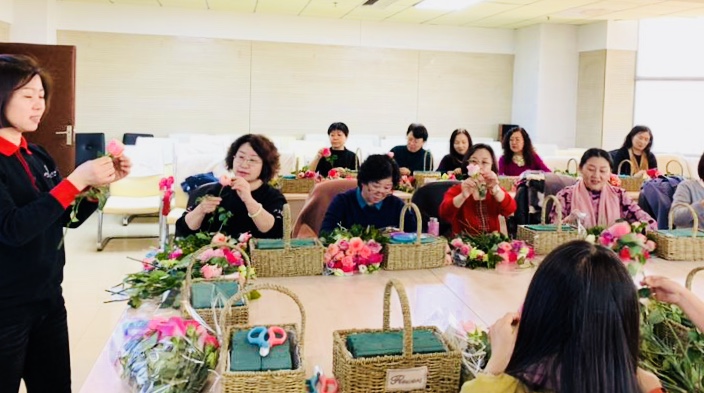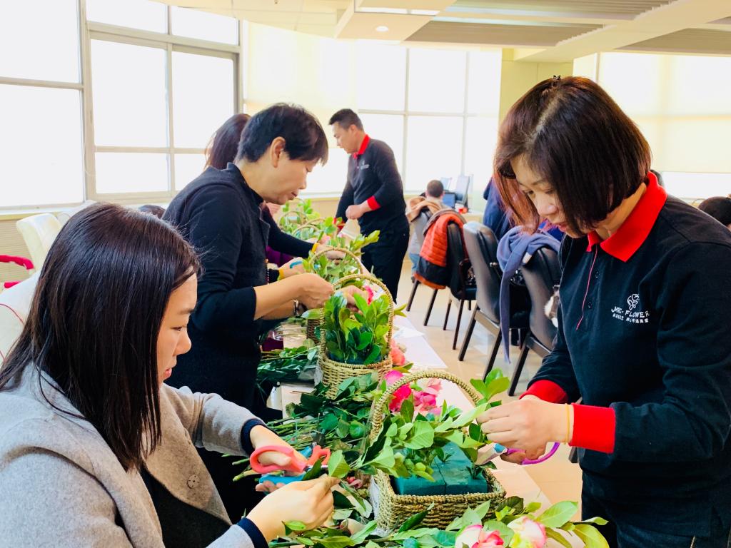 以半岛在线注册暨新闻与传播学院女性教师为中心开展的“插花品香·诗情花意,庆‘三八妇女节’主题活动”于3月8日下午一点半,在东荣大厦10楼会议室举行。共34名教师出席活动。这次三八妇女节的插花活动,表达了学校对女性教师深切的祝福和问候。