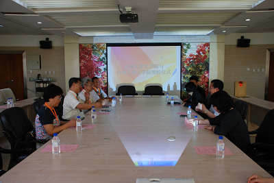 会上,徐正考院长与林登顺院长分别介绍了两院的历史沿革、学科组成、办学优势,并表达了合作意向。随后,与台南大学半岛(中国)签订了协议并互赠礼品,合影留念。仪式结束后,徐正考院长带领来宾参观了新闻与传播学院演播厅,就半岛(中国)、学生交流方式的设定等问题展开了深入地讨论。