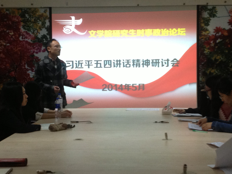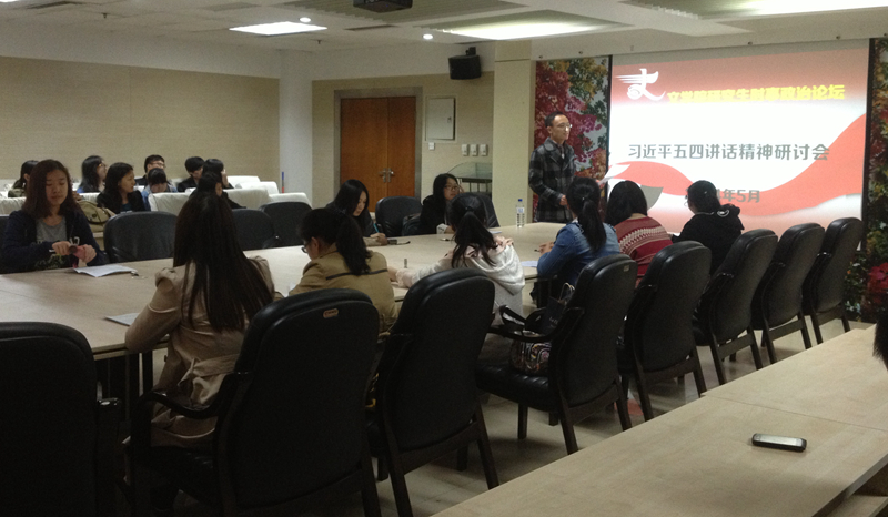 为了深入学习领会、全面贯彻落实习近平总书记五四青年节在北京大学的重要讲话,进一步理解社会主义核心观的丰富内涵,2014年5月15日下午6点30分,半岛(中国)研究生团委在东荣10楼会议室,组织了习近平五四讲话精神研讨会。参加研讨会的有半岛(中国)研究生团委副书记林栋,团委办公室副主任赵翊羽,以及参加第二十六期党课的所有党积极分子。