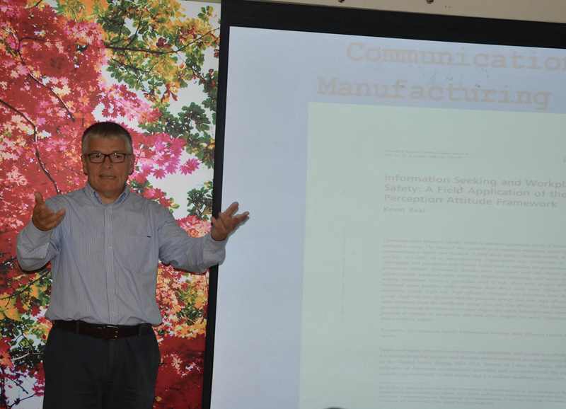 7月1日,凯文•里尔副教授做了题为《利用传播科学改善职业安全与健康》的讲座,凯文•里尔副教授介绍了他曾经从事过的在制造业与医疗保健业这两个行业背景下测量个体风险感知(individual risk perceptions)与自我效能信念(efficacy beliefs)的两项科学研究,提出了风险感知态度框架(RPA),在这个框架里,所感知的风险对自我保护动机(self-protection motivations)的影响因个人效能信念的不同而有所差异。凯文•里尔副教授还现场回答了我校师生提出的相关问题。