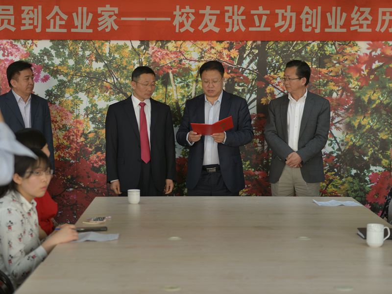 张立功校友生动地讲述了自己从公务员到企业家的经历。他在职业发展生涯中始终坚守共产党人信仰信念宗旨,注重实效,坚持学用结合,知行合一,以实际行动践行社会主义核心价值观,正确地处理公与私、义与利、个人与组织、个人与群众的关系。将正确的理想追求转化为行动的力量,在拼搏奋斗的过程中不断加强自身的道德修养,崇德向善、注重自律,把社会主义核心价值观内化为精神追求、外化为自觉行动,切实发挥了先锋模范作用,为党员和广大师生树立了良好的榜样。